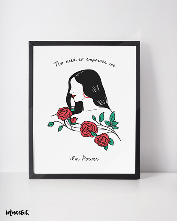 I am power is an empowering poster that represents a strong and feminine image of a woman who is powerful, confident, and always on the quest for greatness.