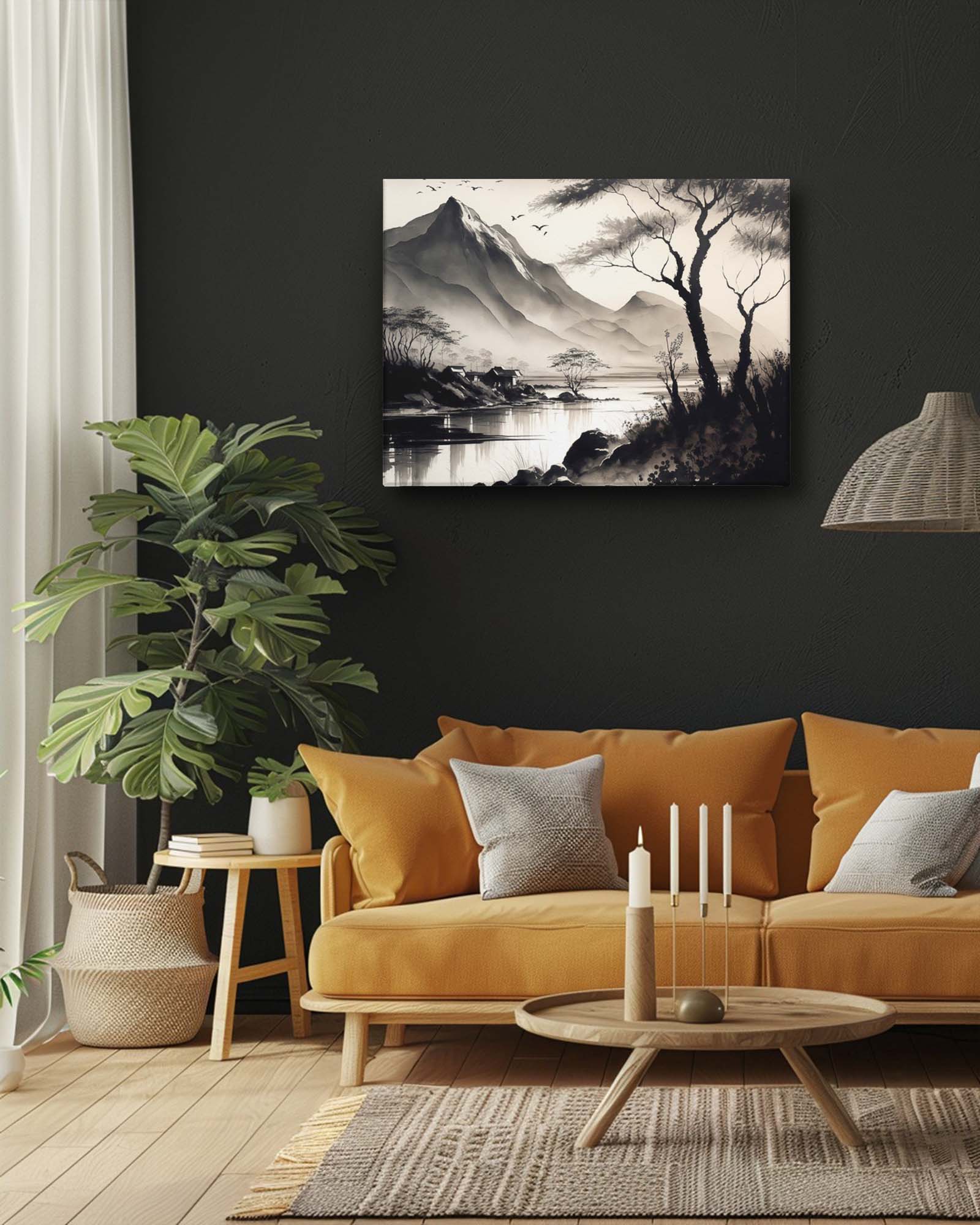 Serene landscape ink art canvas