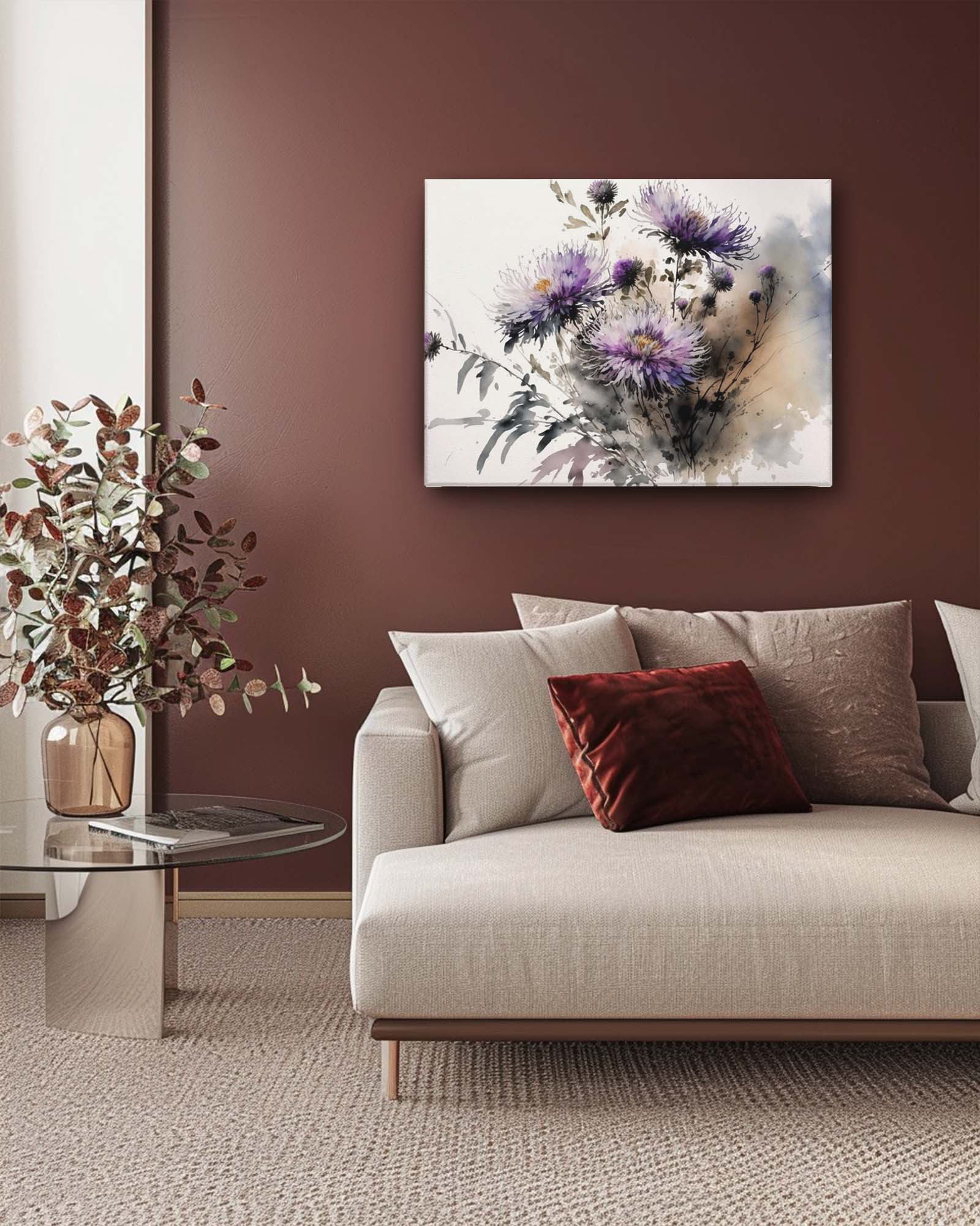 Whispering asters watercolour canvas art