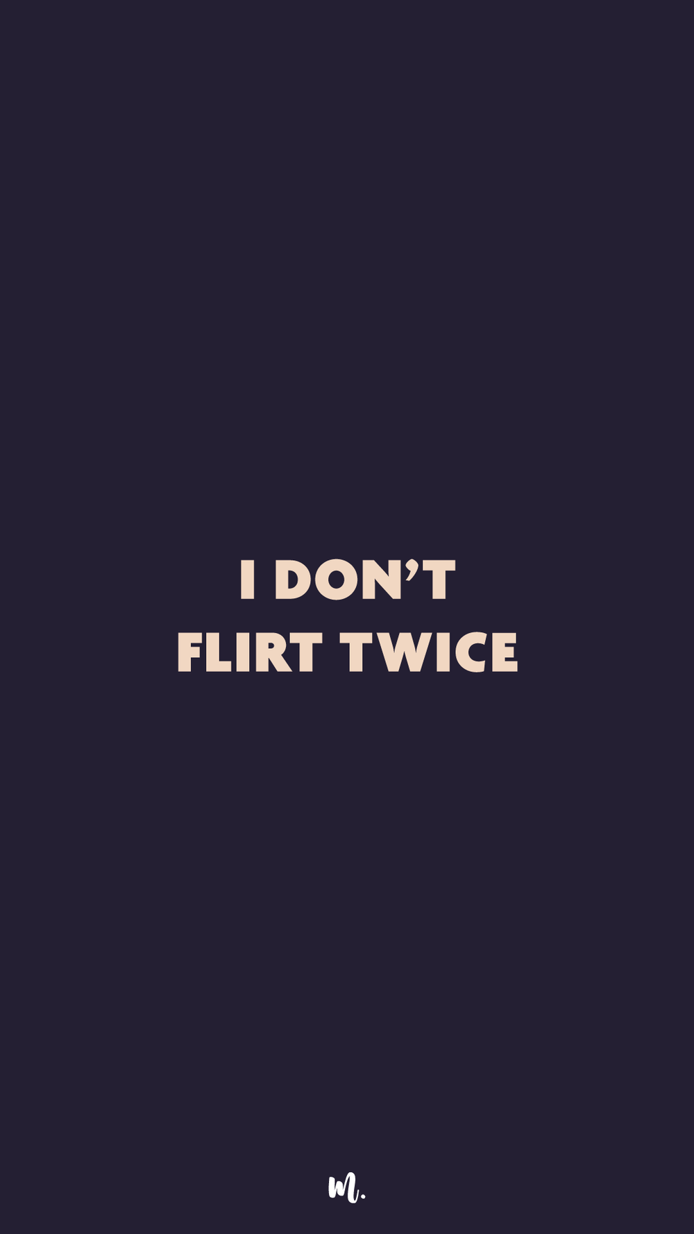 “I DON’T FLIRT TWICE.”