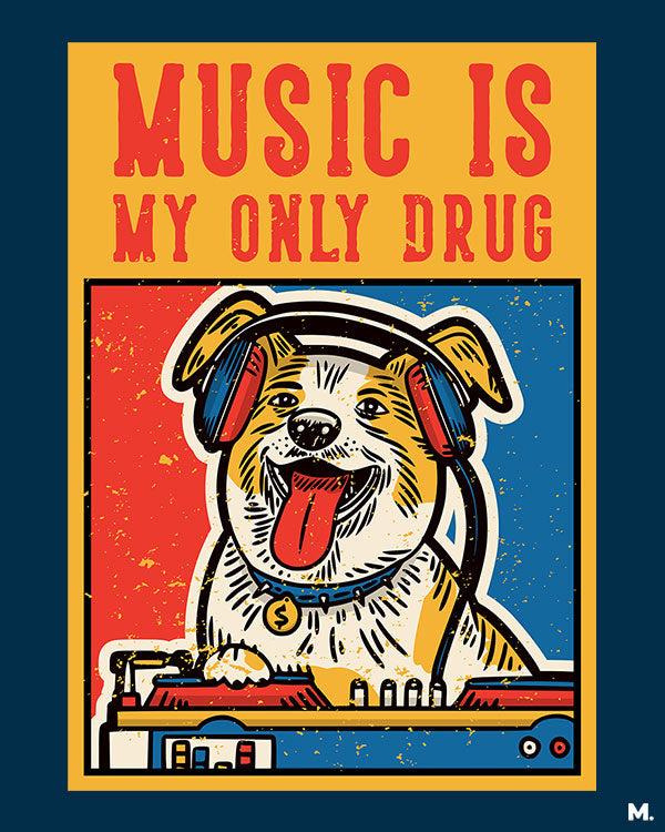 Music is my only drug printed t shirts